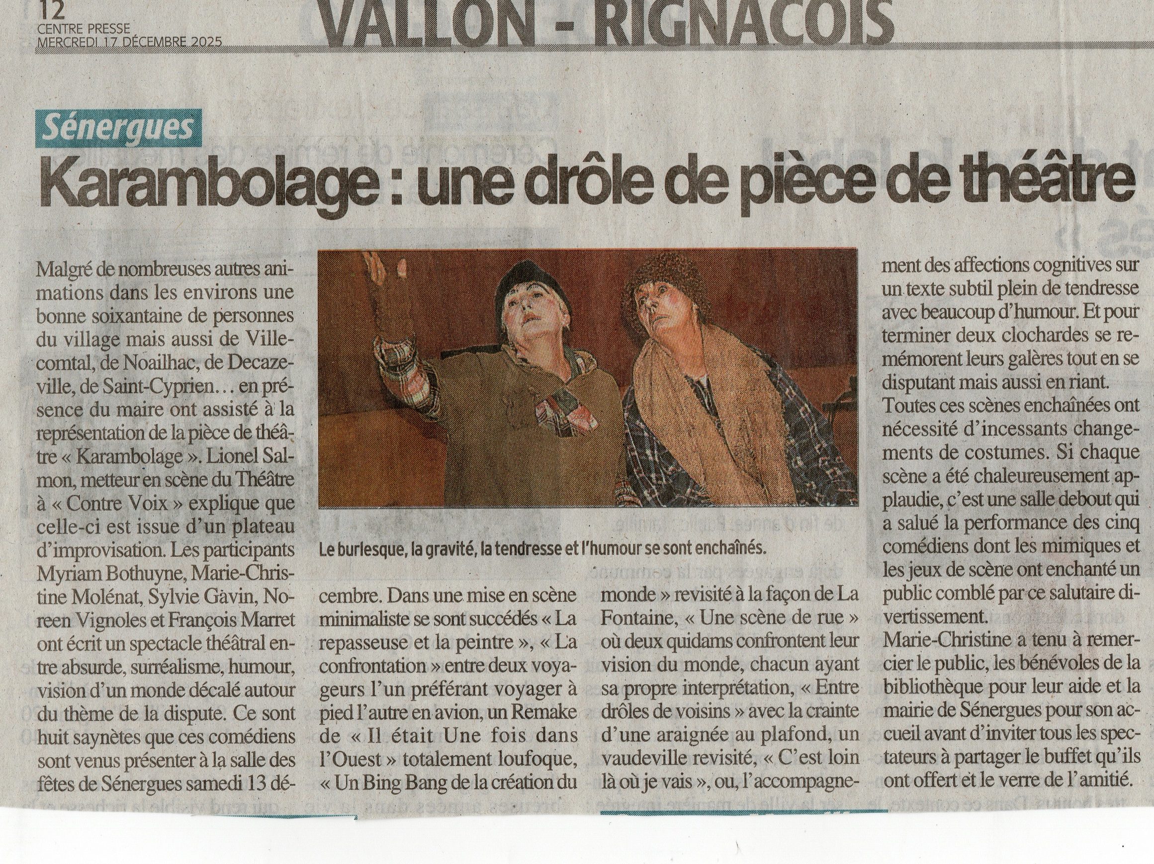 article spectacle Karambolage à Sénergues le 13 décembre 16 décembre 2025 lionel63 Laisser un commentaire