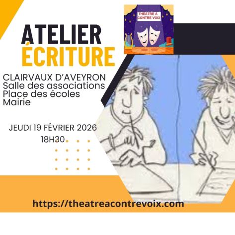 Le Théâtre à contre voix propose des ateliers d’écriture. Ils sont nomades et voyageront de Claivaux à Valady, de marcillac Vallon à Sénergues, De Sénergues à Entraygues, d’Espalion à Saint Côme d’Olt.