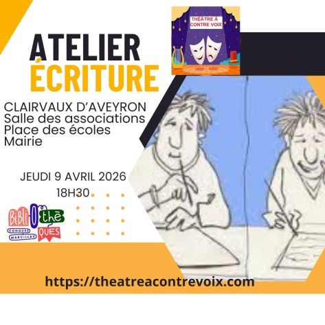 Le Théâtre à contre voix propose des ateliers d’écriture. Ils sont nomades et voyageront de Claivaux à Valady, de Marcillac-Vallon à Sénergues, de Sénergues , d’Espalion à Saint Côme d’Olt.